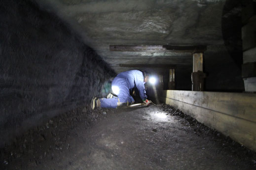 Binnen is het donker. Koud. De gangen zijn laag, de lucht zwaar. De gids loopt voorop, het licht wiebelt over roestige buizen en oude bielzen. Je daalt af, dieper de schacht in. Dan krijg je de kans om zelf te kruipen. Door een nauwe gang, met de uitrusting van een mijnwerker. De helm schuurt langs het plafond en je knieën raken steen. Je voelt hoe zwaar dit werk was. Geen machines. Alleen lichaam, stof en duisternis.